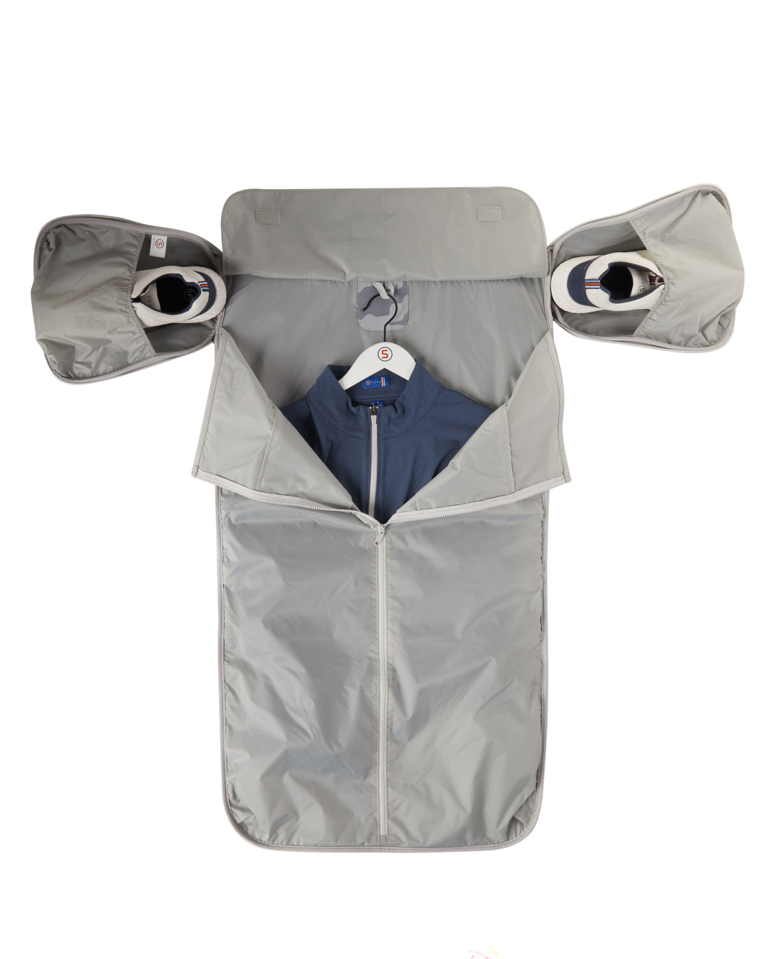 The UGB measures 22.5" x 11.5" x 12"; and unfolds to garment bag measuring 39.5" x 33"; 2.5" when folded flat.